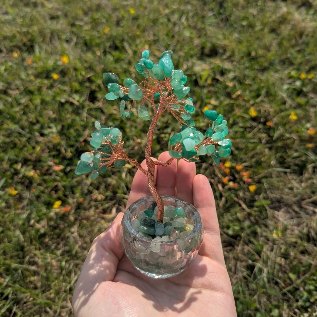 Attract abundance and harmony into your space with Green Aventurine, a beautifully crafted tree made from natural Aventurine crystals. Known as the stone of prosperity, Aventurine is revered for its ability to attract wealth, success, and positive energy. This exquisite gem tree features delicate Aventurine stones arranged on a wire structure, symbolizing growth, renewal, and balance.