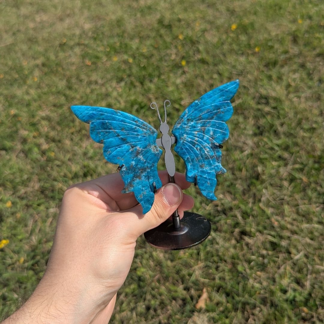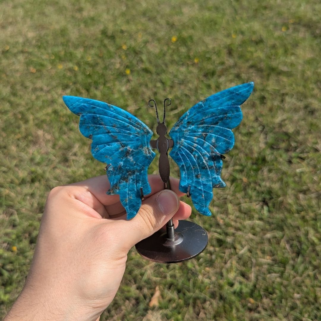 Transform your energy with the Blue Apatite Butterfly, a stunning piece that symbolizes personal growth, freedom, and positive transformation. Known for its vibrant blue hues, Blue Apatite is a powerful crystal associated with clarity, focus, and manifestation. The butterfly adds a layer of symbolism for rebirth and evolution, making this piece ideal for anyone on a journey of self-discovery.
